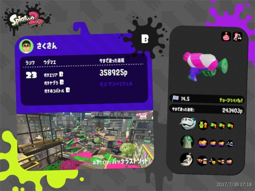 スプラトゥーン2が7月20日に発売されて10日が経ちました。ウデマエがようやく全てBになりました。 とりあえず、ガチマッチが遊べるランク10までナワバリであげるのが大変でした。フレンド部屋で遊びながらランクを上げて行く感じでした。 ガチマッチ 発売3日…